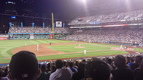 The restaurant is on the side of the ball park.  Here was our view into the park.
