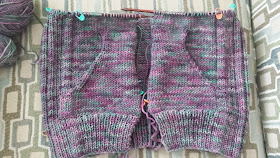 I've been very excited to work on my first sweater, English Garden Hoodie (Everything Nice Hoodie pattern). I finally got beyond the pockets! It was so exciting to join the pockets to the rest of the fabric.