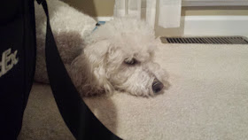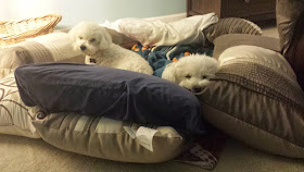 We originally made up this little "bed" for my nephew, Owen, to try and nap during my birthday party. He never used it, but my pups decided it was comfortable.